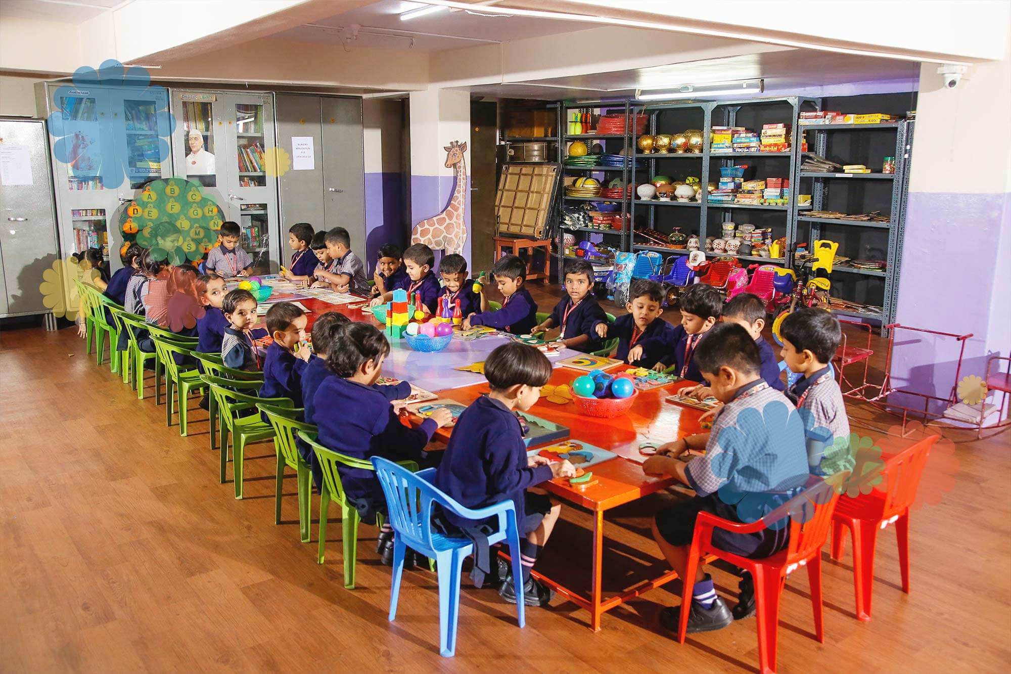 In Pre-Primary, we have a Toyland which is nursery workshop wherein children enjoy playing with toys, tri-cycles, cars, slides and many organized games. This is all to help the children to have practical experience of what they listen to.